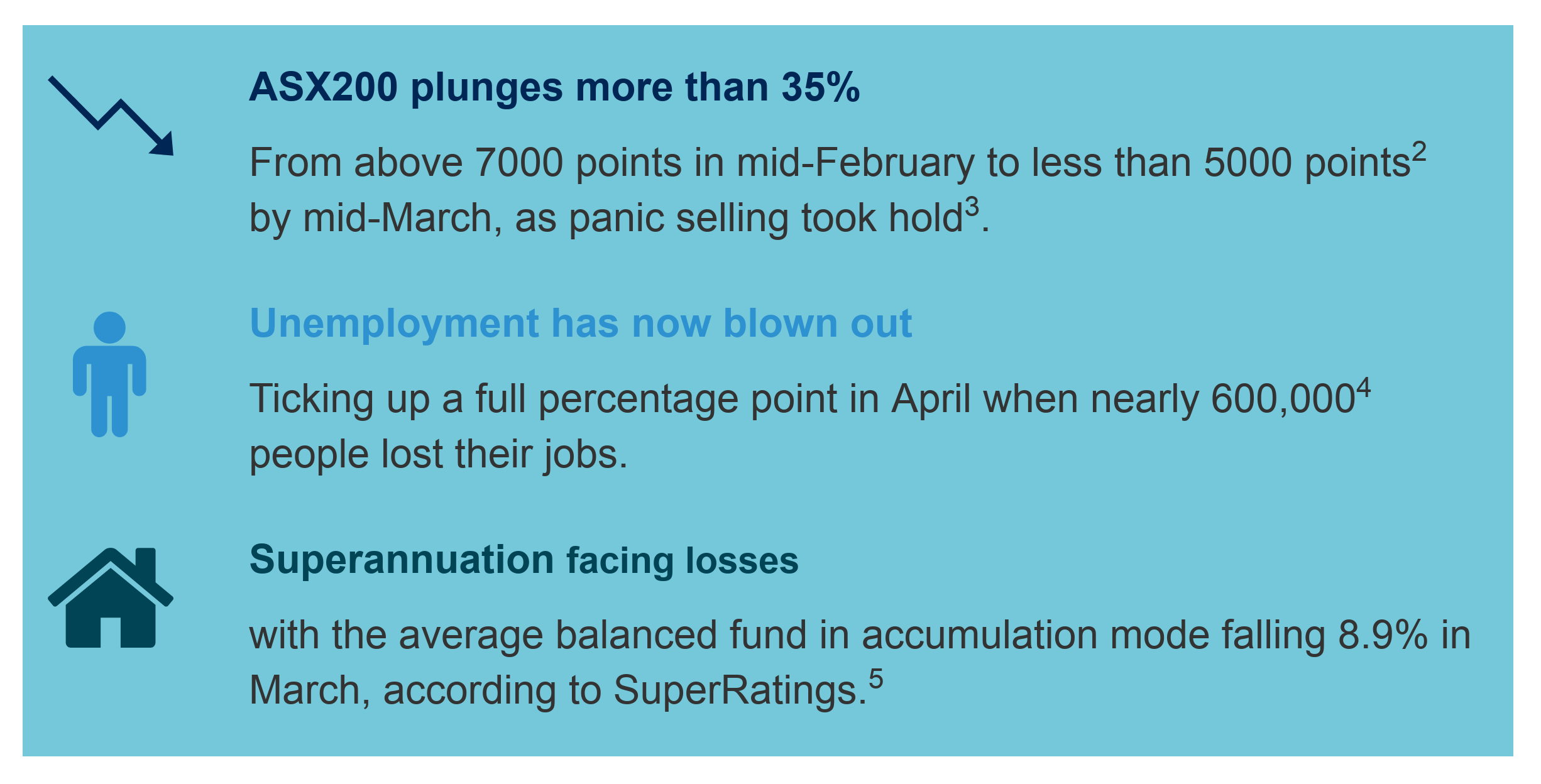 Nearly every Australian household is suffering some sort of financial shock – whether it be to their incomes, discretionary spending or investments and super balances.