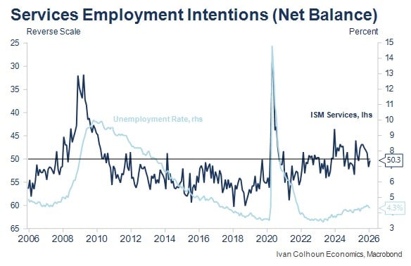 - Military-related market developments will likely predominate this week, though US labour market and ISM survey data are important after surprising strength in each indicator last month. The ISM Services employment question is currently the most important indicator I’m following each month, along with Indeed job postings in the US.