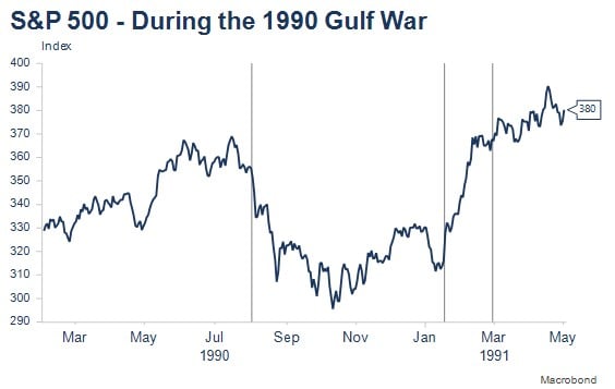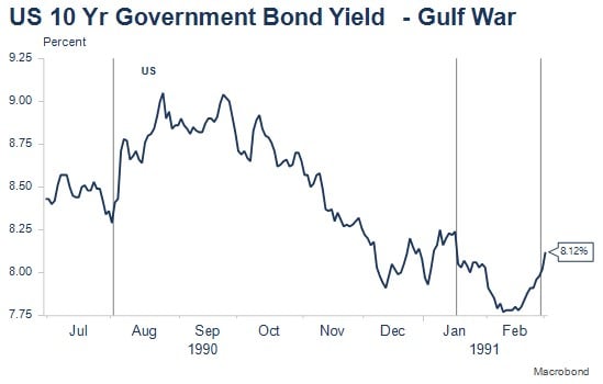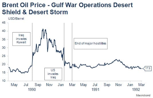 Importantly, much of the military-related pricing moves had reversed or were in the process of reversing ahead of Operation Desert Storm, though in part this reflected global recession. It was true that once Desert Storm got underway, the superiority of the US and its allies saw markets generally unwind remaining existing war premia or discounts.