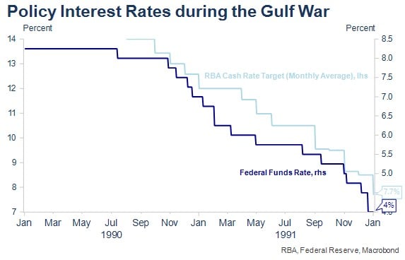 - The Gulf War saw the US Federal Reserve and RBA focusing on domestic economic fundamentals and continuing to ease as both economies entered recession, which the oil price accentuated but did not cause.