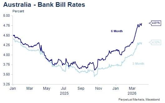 • Markets have been a little more settled over the past week. Share markets improved sharply on earlier suggestions the war might end soon and have sustained this move even as oil prices reversed earlier declines. The Fed and RBNZ have signalled a period of observation on the economy and consideration of the medium-term impacts on inflation is warranted. That seems a prudent course of action given the unknown duration of the conflict and the lags with which monetary policy affects the economy. That’s what I would do at the May Board meeting if I was the RBA Monetary Policy Board, having recently tightened policy twice. Markets are only 64% priced for a follow up interest rate rise in May and almost but not completely priced for a further rise in June.