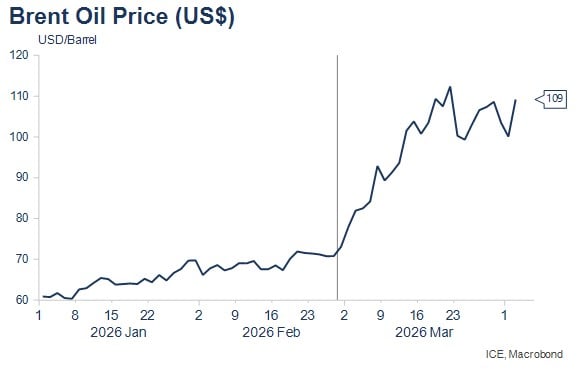 It’s not possible for economists to forecast how the economy and monetary policy will ultimately turn out with any degree of certainty at the present time, because so much depends on the course and length of the military conflict. As I have been writing in recent weeks, the time the Strait of Hormuz is closed likely remains the number one determinant of the oil price and the course of global economies and inflation, while damage to energy infrastructure in the region is likely the second most important consideration. Both depend on how soon the warring parties resolve their differences and when Iran will allow vessels of other nations shipping access to the Strait of Hormuz. At this stage, the Strait remains effectively closed.