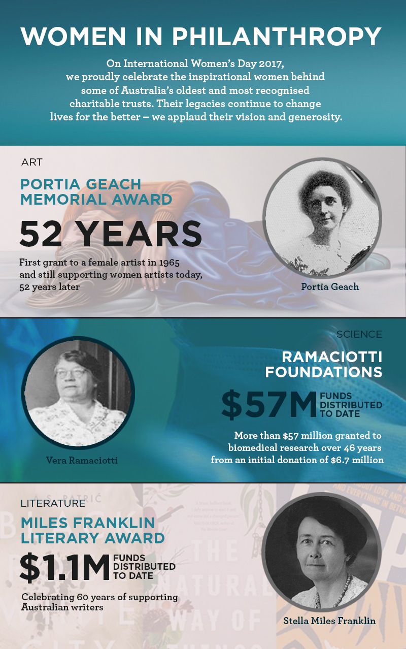 The history of philanthropy in Australia is rich with the charity of women with vision and generosity; many of whom have used their legacies to improve the lives of other women and girls. Despite some of the oldest and most well-known charitable trusts in Australia having been established by women, their contribution has often been overlooked. Perpetual is proud to have played a role in this philanthropic history, as we share wonderful stories about the generous contributions of Australian women.